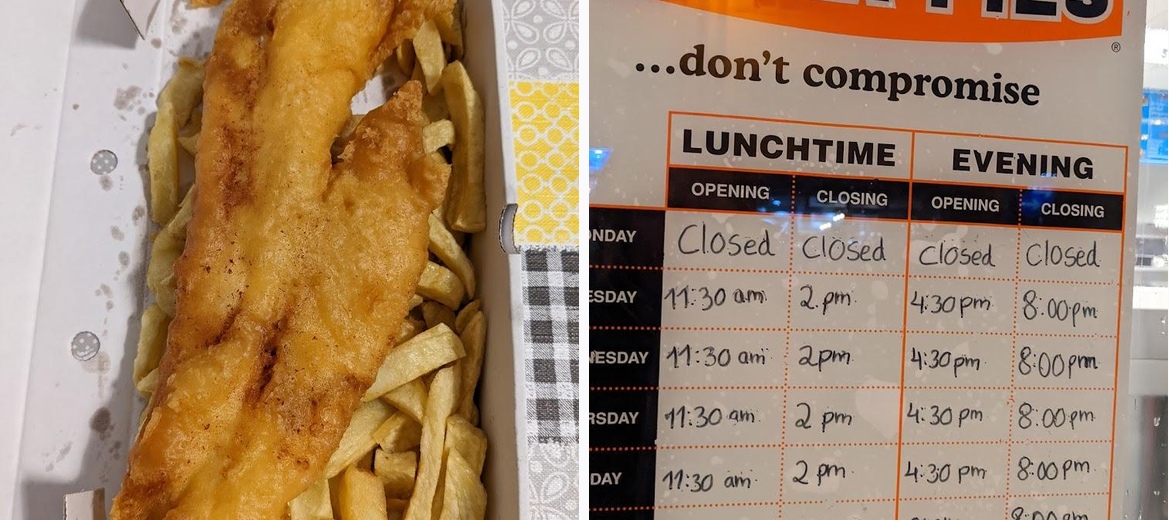 Went to this place today for 3x fish & chips. I was order number 3 after a 50x order had just been received. It was very busy and the staff very apologetic. Total wait for my order was about 15-20mins. Given the above order, that they were clearly very busy with, I thought this was impressive. Was the quality of our food affected by this massive order? In short - nope! Chips were great, fish was best I've had in a long time - flaky, crispy batter - how it should be. 100% recommend, fantastic place and staff.